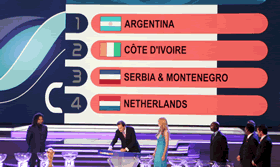 一方、またもや死のグループに組み込まれたのがアルゼンチンだ。こちらは、無失点の3連勝でグループリーグを難なく突破した1998年は抽選に恵まれたが、2002年の韓日大会では、スウェーデンやイングランド、ナイジェリアという激戦区にぶち当たり、勝ち点差1及ばずグループリーグ敗退の憂き目に遭った。前回の屈辱を晴らすためにもグループリーグ突破は絶対であるアルゼンチンだが、ドイツ大会でもまた死のグループに組み込まれた。FWディディエ・ドログバを擁するコートジボアール、ストイコヴィッチ世代以来のワールドカップ出場に燃えるセルビア・モンテネグロ、さらには優勝候補の一角でもある強豪オランダと実力派が揃いに揃った最激戦区を突破しなければならない。現在の代表は、かつてないほどの最強メンバーが揃ってはいる。不安も杞憂に終わればよいが、前回大会のようなグループリーグ敗退という「事故」だけは是が非でも避けなければならない。