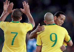 この親善試合で、セレソンは試合でなく攻撃の練習をしているかのようだった。カルテット・マジコの4人で序盤から厚い攻撃を展開。後方からはゼ・ホベルトや、ホベルト・カルロス、カフーらも攻撃に参加して攻めこみ続けた。先発出場の2トップがそれぞれ2点を決めれば、MFカカー、MFジュニーニョ・ペルナンブカーノと中盤の選手もゴールを記録。放たれたシュートの数は30を優に超え、この日のセレソンは総アタッカンチ状態になっていた。