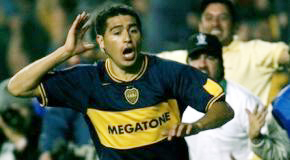 写真右上; 62分に力強いドリブルから先制ゴールを決めた、もっか好調のMFファン・ロマン・リケルメ ( ボカ ) 。