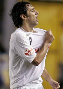 写真右上; 64分に同点ゴールを決めたFWジョナス ( サントス ) 。