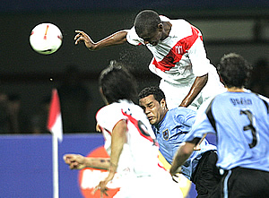 ワールドカップよりも古い歴史を有する世界最古の国際大会、コッパ・アメリカは2007年ベネズエラ大会が6月26日に開幕。メリーダとサン・クリストーバルでグループリーグの戦いが始まった。メリーダのエスターディオ・メトロポリターノで行われた ウルグアイ×ペルー は、3点を奪ったペルーが快勝。ペルー代表は理想的なスタートを切った。 試合は、序盤からボールが動き、緊張感のある試合になった。開始5分間はペルーが押したものの、それ以降はウルグアイも前がかりに攻め、多くの決定機が生まれた。均衡が破れたのは27分。ショートコーナーからFWファルファンが上げたクロスに、DFビジャルタがファーサイドでヘディングシュート。GKカリーニの手を弾いてゴールが決まり、ペルーが先制した。